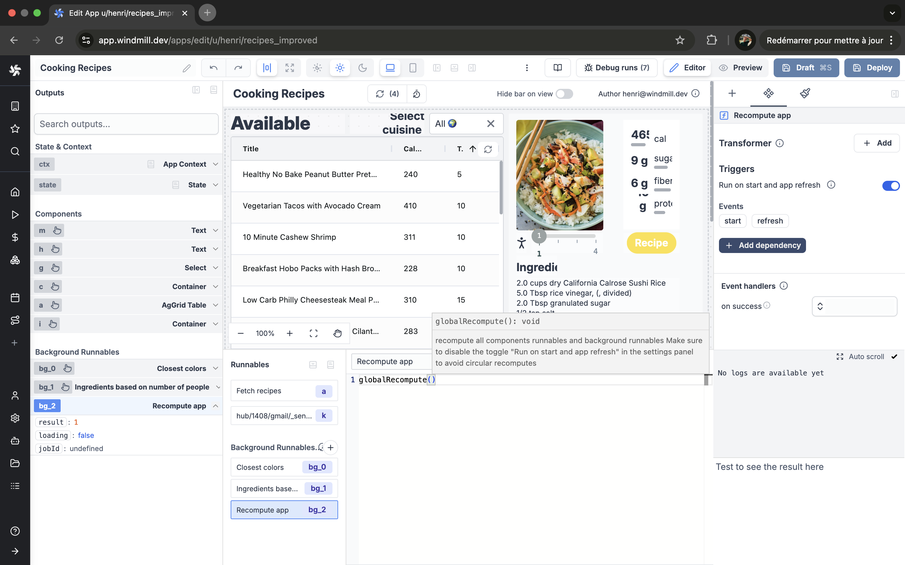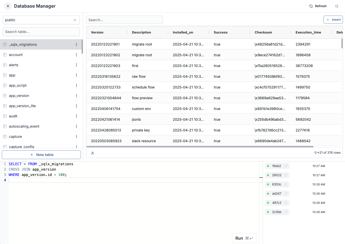 Introducing the Database studio, a web-based database management tool that leverages Ag Grid for table display and interaction. In apps, interaction with database content made easy; from a SQL resource, display, edit, add rows, delete rows ... and connect to other components.