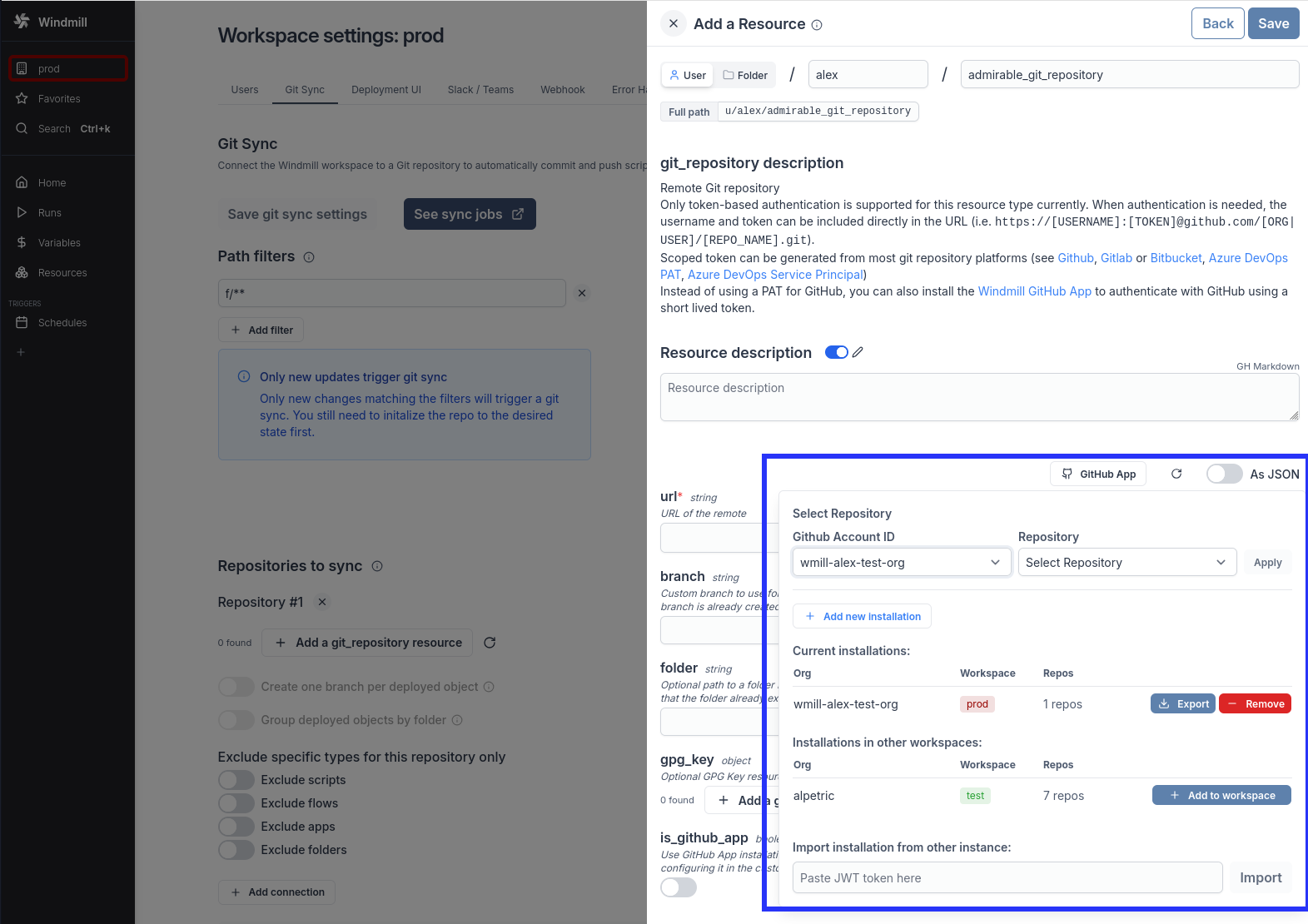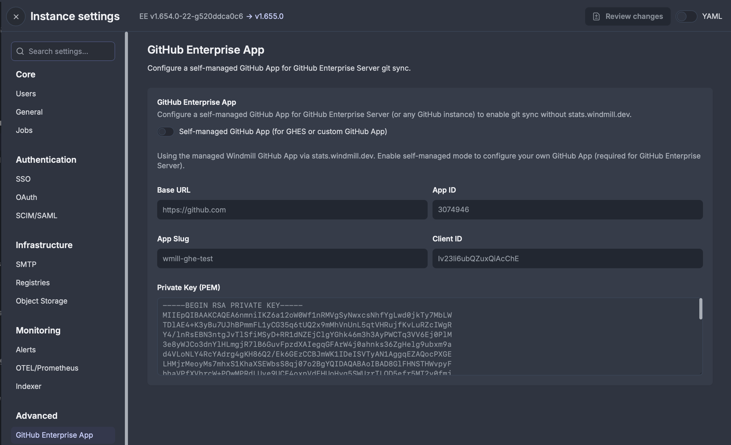 Self-managed GitHub App support for GitHub Enterprise Server instances, enabling Git sync without relying on the Windmill-managed GitHub App.